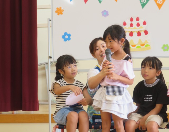 今月は5名の誕生者です。みんな一人一人、どんなケーキを食べたのか、どんなプレゼントをもらったのかなど、とても嬉しそうにお話をしてくれました。