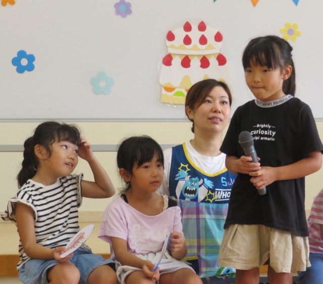 誕生者さんは、みんなの前で紹介されてお返事したり嬉しそうに笑顔を見せたりする姿が見られました。