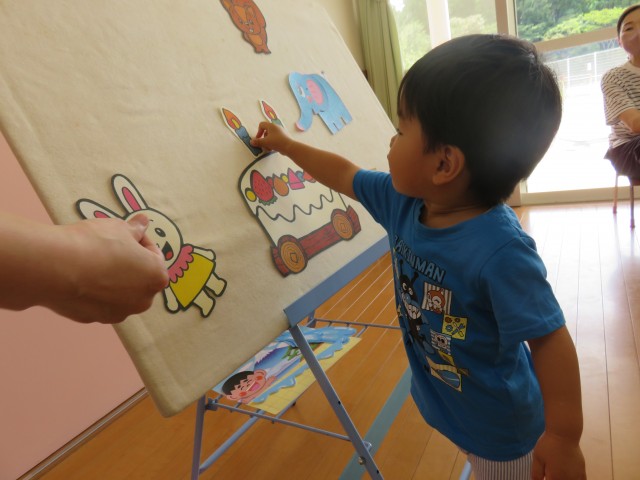 最後は動物さんとお誕生会♪誕生者のお友達にろうそくを立てるのを手伝ってもらいました。