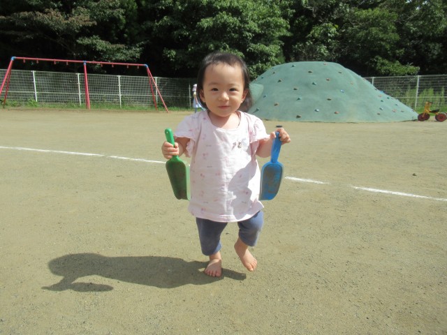 以上児のお姉さんたちと一緒に砂場で遊んだり、トンネルの中へ探検に行ったりとっても嬉しそうな子どもたちでした☺