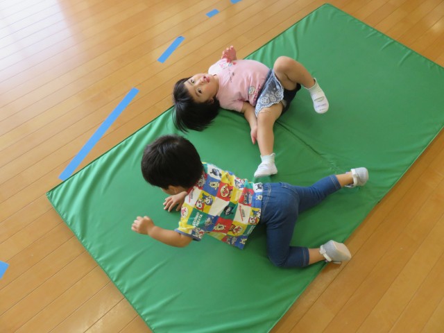 マットではみんな転がって顔を合わせ「きゃはは」と声を出して笑っていました!