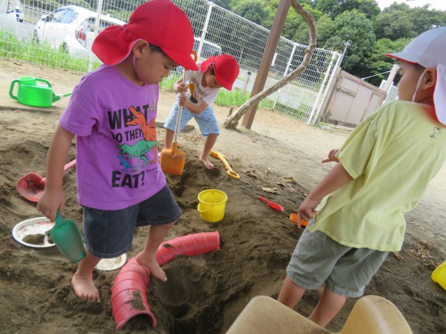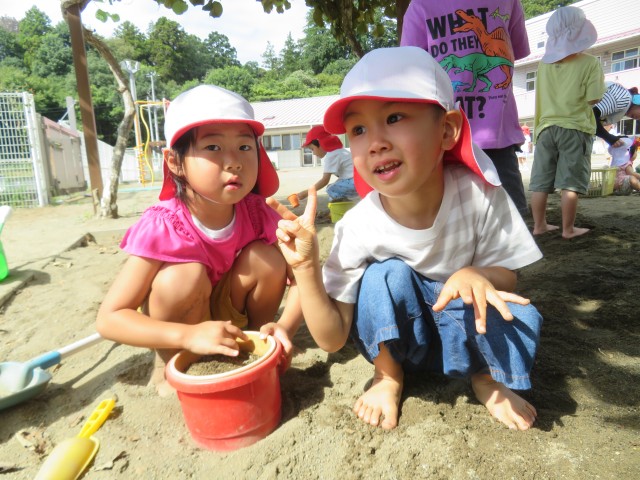 泥団子を作ったりとそれぞれ遊び方を友達同士で考えながら楽しんでいました♪