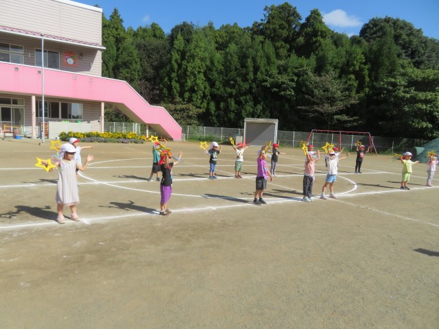 少し緊張する子の姿も見られましたが音楽が流れると自然と笑顔があふれ、身体をいっぱい動かして楽しんでいました。