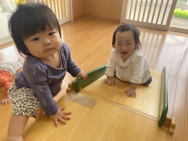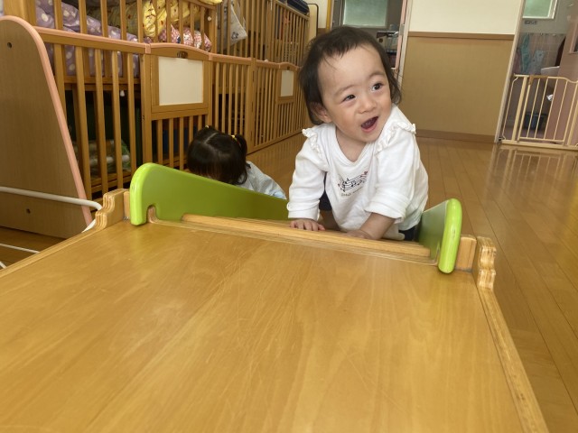 てっぺんで得意げな顔を見せたり、保育士と目が合ってにっこりしたり、それぞれのペースで、楽しいひとときを過ごしました♪