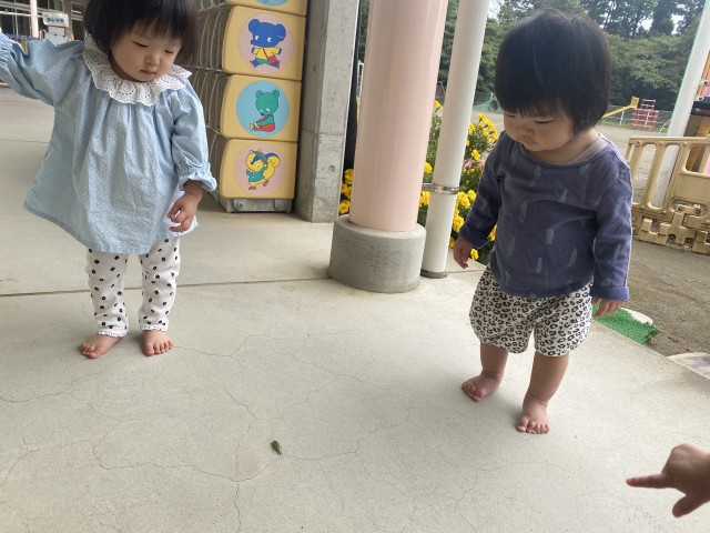 蜂やアリ、てんとう虫等様々な虫達が出てきて、興味津々でした。「お外で昨日見た!」と近況報告もしていました。