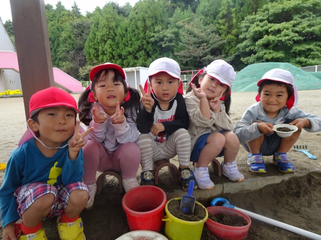 また、キノコも見つけ、みんなで「き・き・きのこ~♪」と楽しそうに歌っていました。