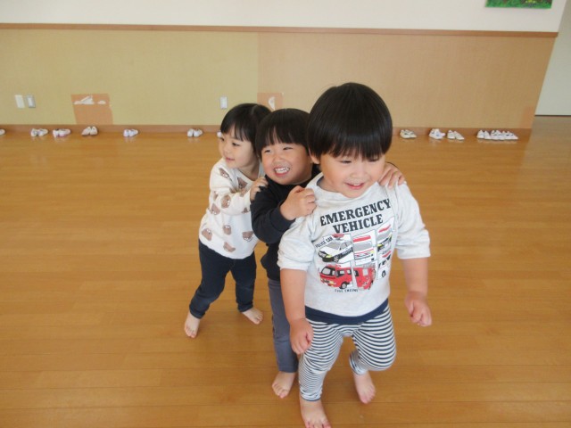 ”きしゃごっこ” ではお友達の後ろに連結し楽しそうに歩いていました。