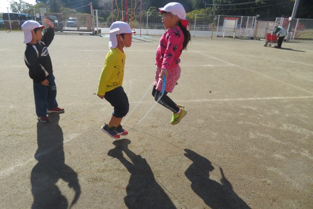 「せーのっ!いち!に!」と息を合わせて数を数えながら、たくさん跳べるように頑張っています!