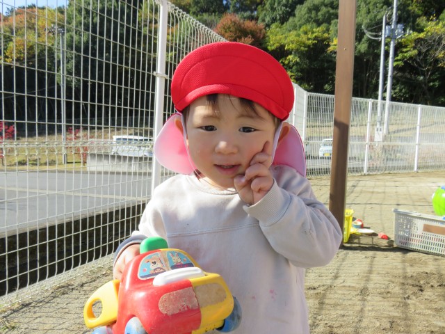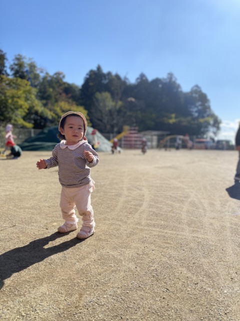真っ青な秋空の下、ひよこ組さんは思い思いの時間を過ごしています。