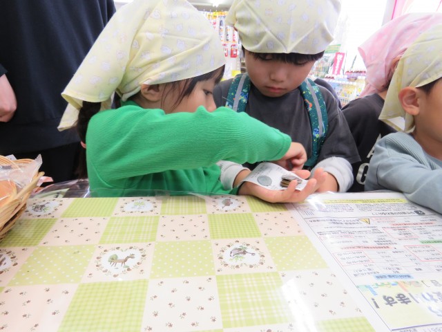 「100円玉 何枚必要かな?」「7枚だと足りる気がする!」等互いに支え合いながら無事買い終えるとホッとした表情の子どもたちでした。