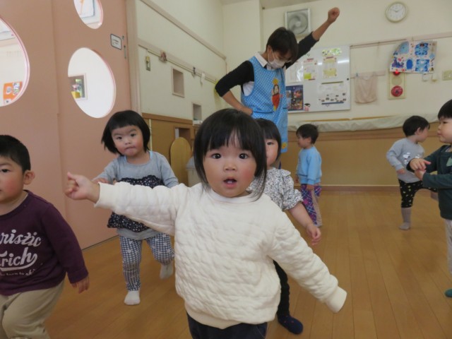 「ジャンボリーミッキー」「からだだんだん」「アンパンマン体操」などたくさん体を動かしたました!