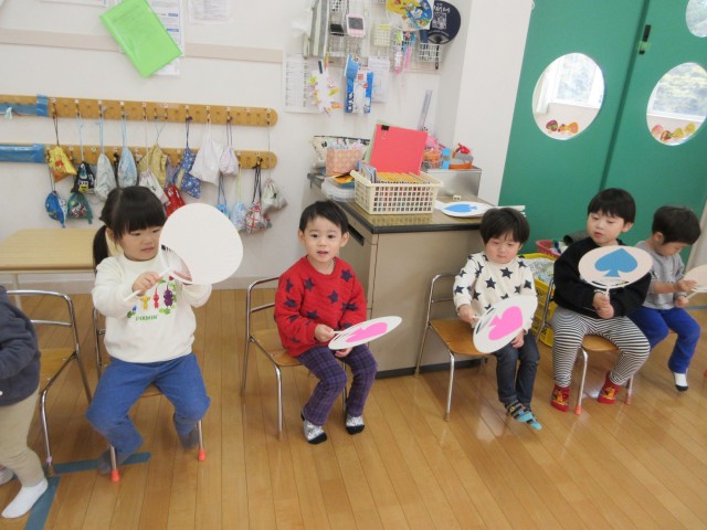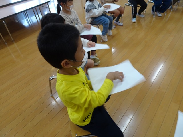 いつハンカチが自分の手にくるのかドキドキワクワクの子どもたち。ハンカチが落とされると一生懸命追いかける姿が可愛らしかったです。