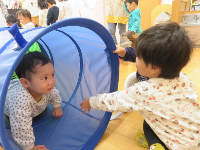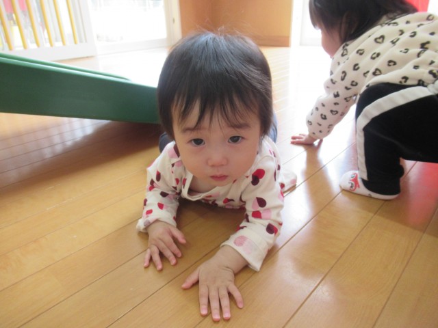 ハイハイやずり這いで保育室を探索するお友達も♪