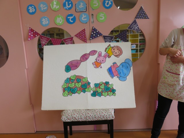 お楽しみは、”ビバビババースデイ”のパネルシアターを見ました。