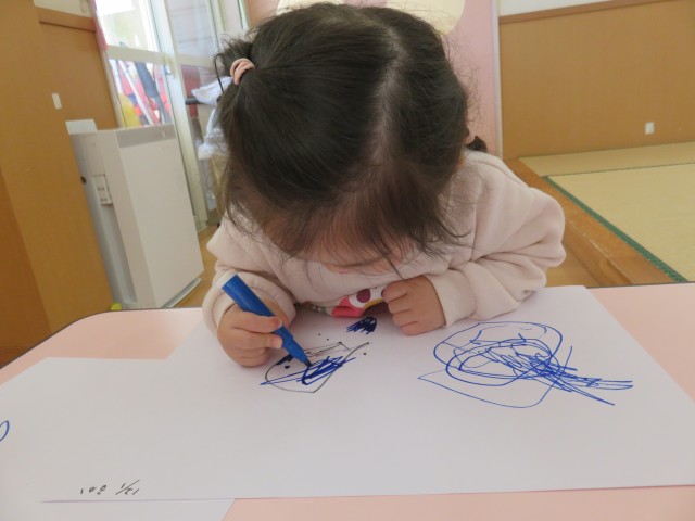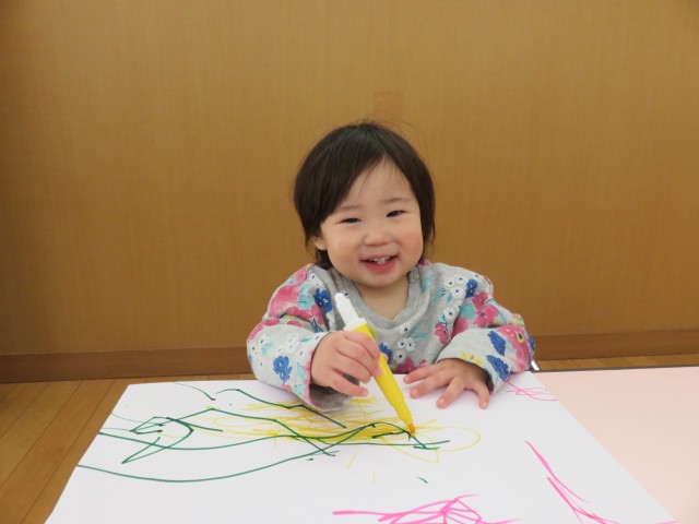 真っ白な画用紙にたくさんの色でお絵描きしました!