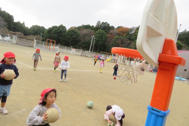 バスケットボールやサッカーをしながら元気いっぱい体を動かして遊んでいました。