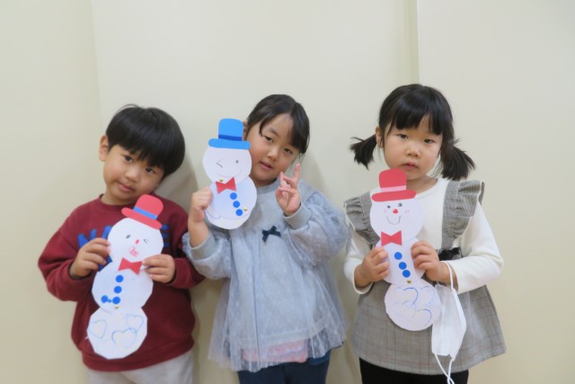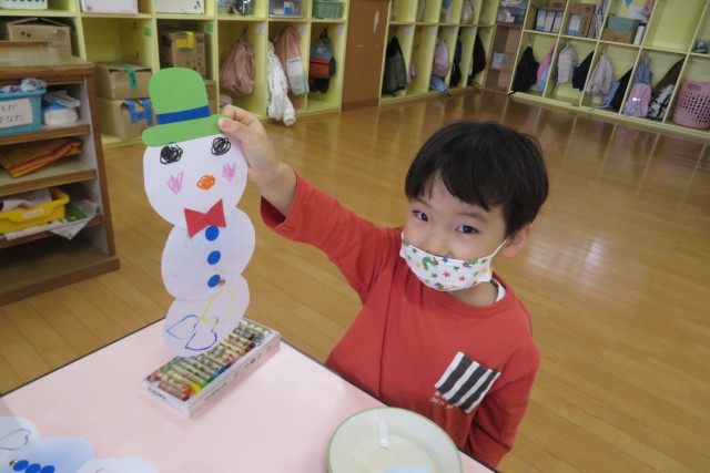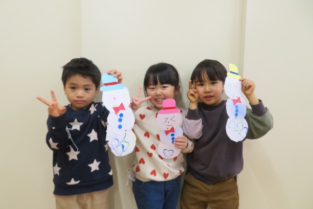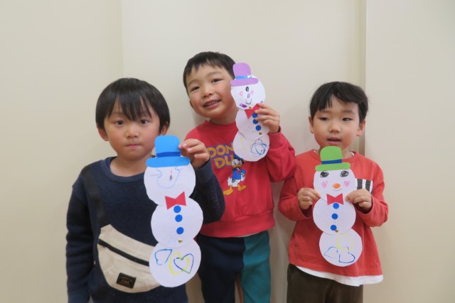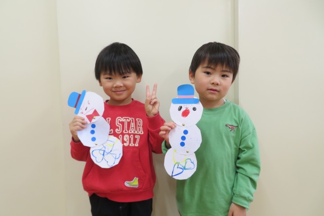 様々な形に動く雪だるま!完成するとお友達同士で動かしながら見せ合いっこを楽しんでいました。