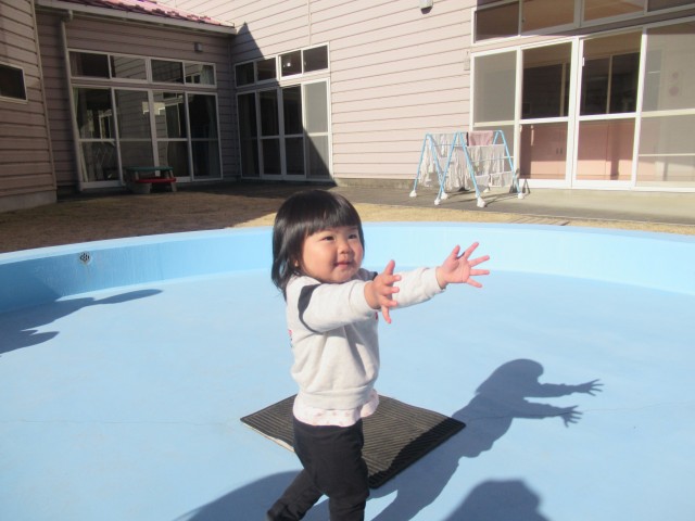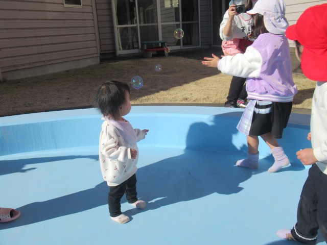 シャボン玉ほしい!と手を伸ばすお友達です!