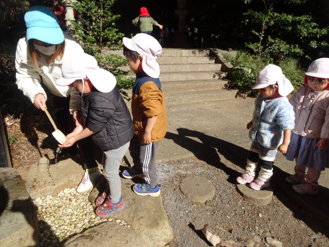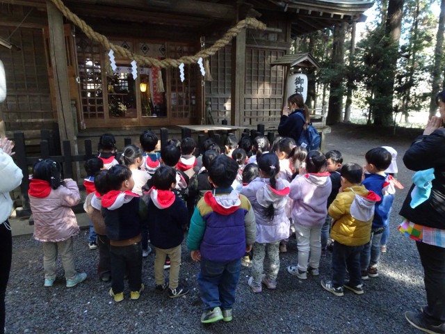 神社に着くとみんなで手を合わせてお参りし、その後は、境内の中を探索しました。