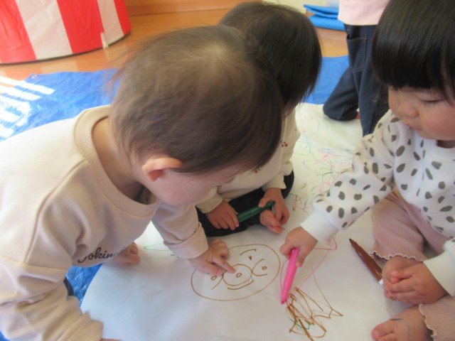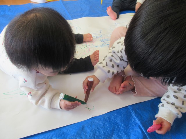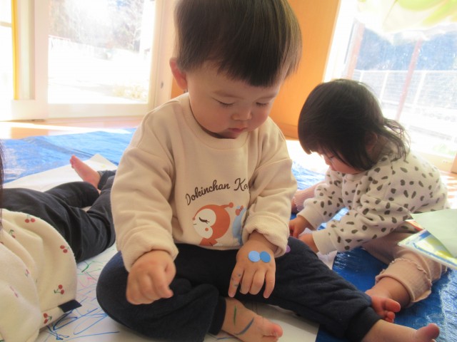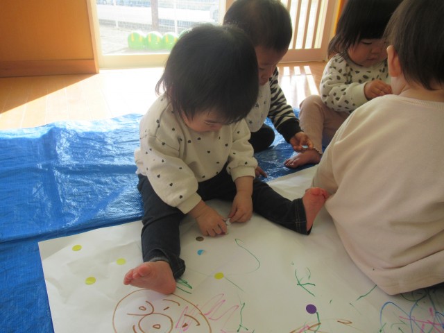「次は版画するんだよね」「どんなふうになるかな?」と次の活動を楽しみにしている子どもたちです。