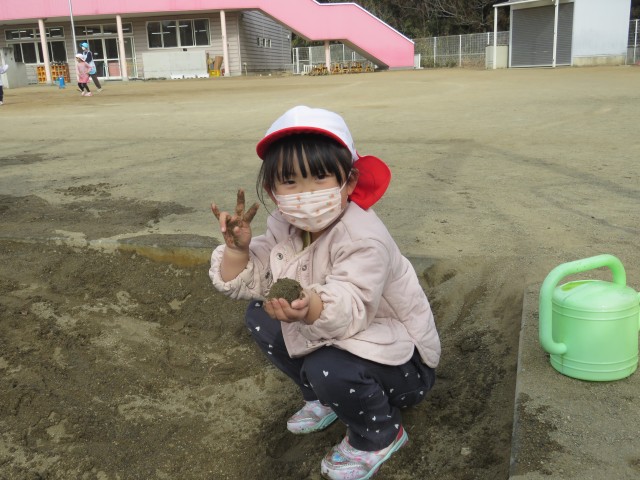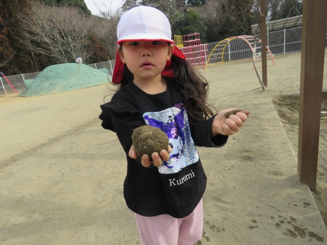濡れた砂を使って泥団子を作り始める子もいました。サラサラ砂と上手に組み合わせて丁寧に作っていきます。