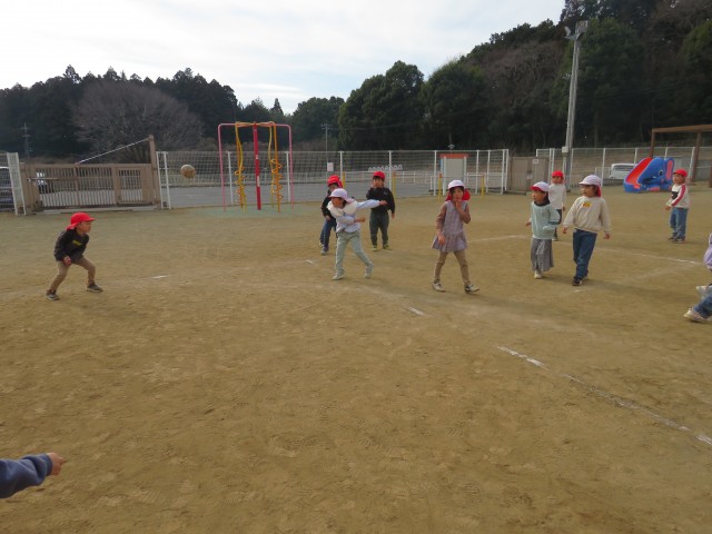 2チームに分かれていざスタート!!ボールに当たらないように、逃げたり、キャッチしたり…白熱した戦いでした…!!