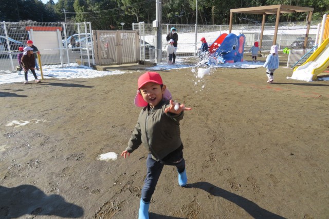 昨日降った雪が園庭に積もり、「早く雪遊びがしたい!!」と楽しみにしていた子どもたち!