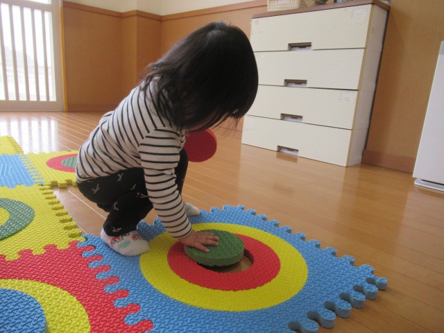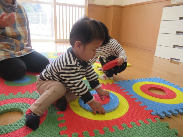 型を抜いたり、はめたり…繰り返し遊ぶ姿が見られました!
