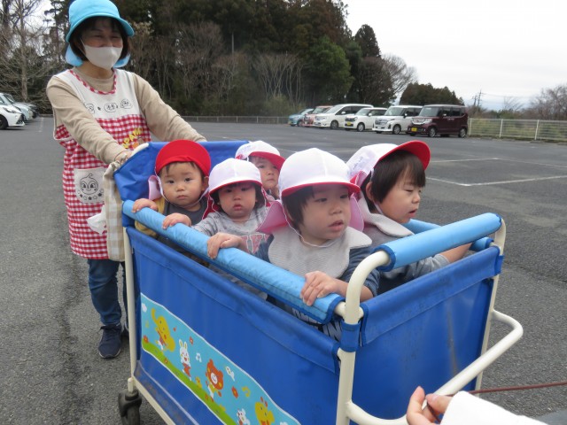 次は坂の下まで歩き、車やトラックを見ました。「車来るかな~?」「トラックかな」とワクワクしながら見ていました!