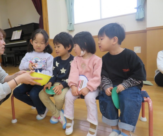 お話を聞いた後は、子どもたちが大好きな歌。うれしいひなまつりを みんなで歌いました。