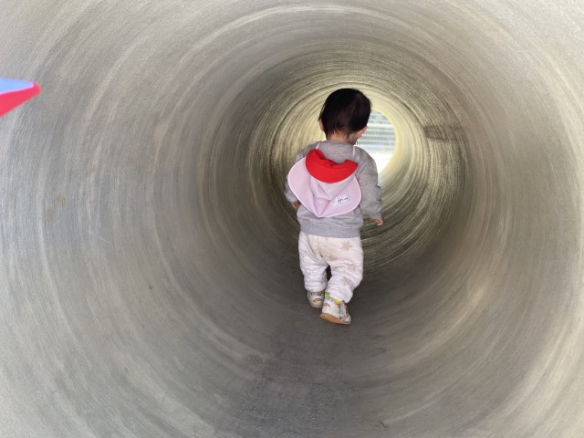 トンネルをくぐったり、ジャングルジムの中をそっと通り抜けたり…。空を見上げていくヘリコプターを見つけると、小さな手を振ってにっこり。ふと立ち止まって辺りを見渡す姿からは、子どもたちの世界がぐんと広がっていることが感じられました。