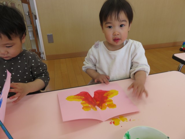 デカルコマニーの技法を使って ”ちょうちょ” の製作です。