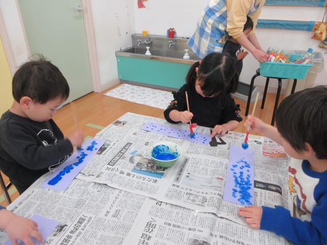 絵の具で遊びました。