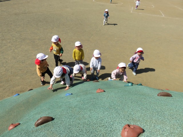 戸外遊びをしました。築山までみんなでかけっこです!!
