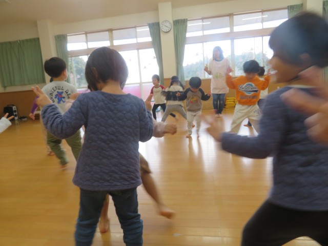 カニさん歩きやライオンのしっぽなど、身体のバランスをとりながら楽しんで真似ていました。