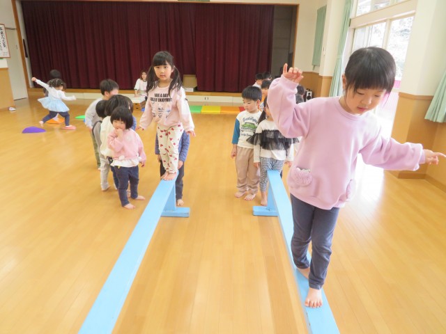 岩渡りや、平均台にも挑戦!