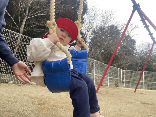 ブランコに乗ったり、三輪車に腰掛けたり…。