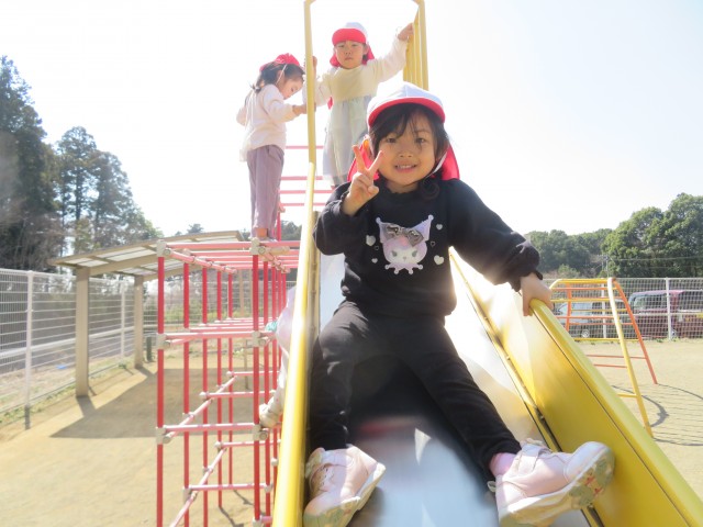 今日も滑り台は大人気です!!『行ってきまーす!またくるね~』と言いながら、繰り返し繰り返し滑って楽しんでいました。