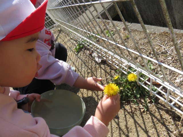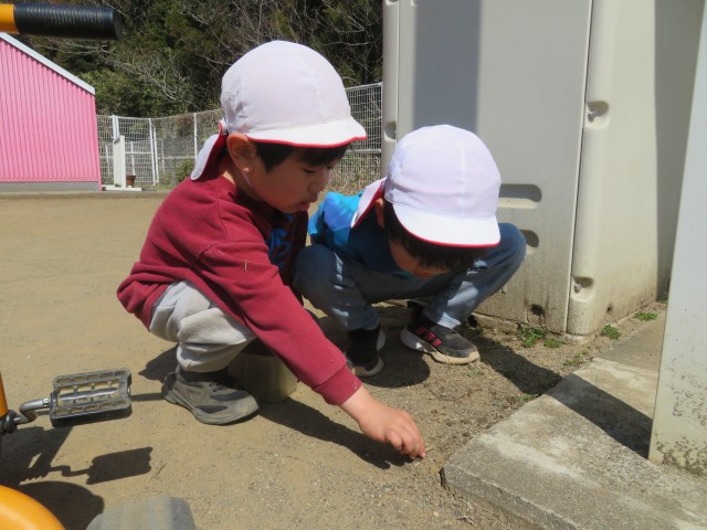 ポカポカ陽気の中今日も小さな春を見つけたことり組さんでした。