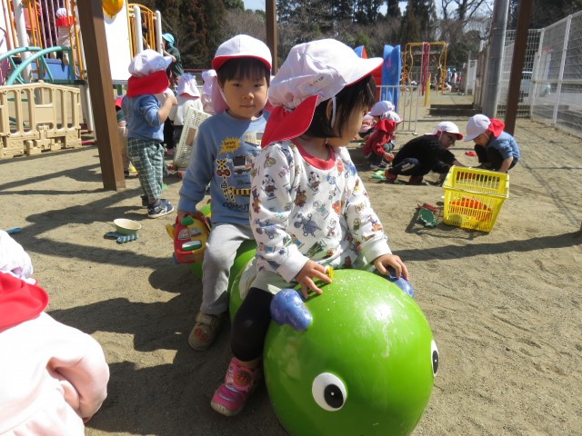 今日はぽかぽか陽気!戸外遊びをたっぷり楽しみました。