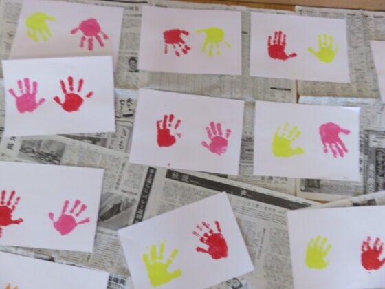 絵具を手に付けて紙にぺたっ!!可愛い手形のでき上がり☆