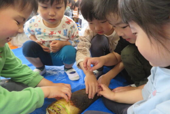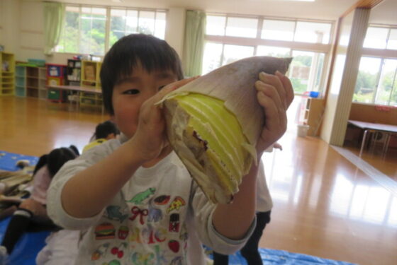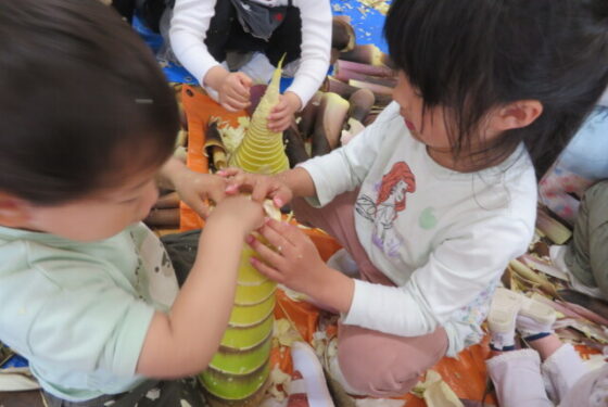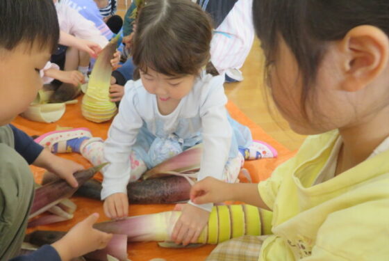 「もぐらバスの絵本に出てきた!」「給食でたけのこご飯食べたよね!」など子どもたちも興味津々!